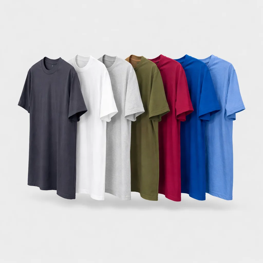Wavy Wear Premium Plain Crew Neck T-Shirts Pack of 7 is designed for men who want comfort, versatility, and style in one complete set. Crafted from high-quality breathable cotton fabric, these T-shirts provide a soft feel with reliable durability. The regular fit and classic design make them ideal for everyday wear, casual outings, or effortless layering in any season.